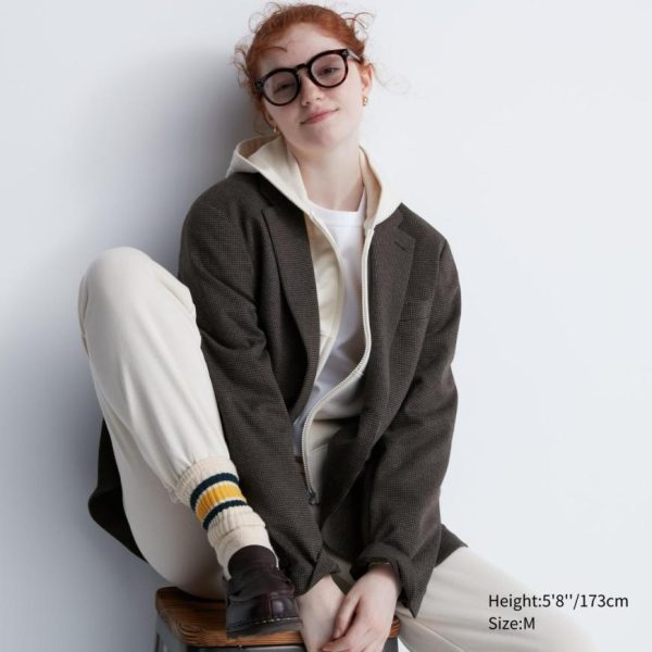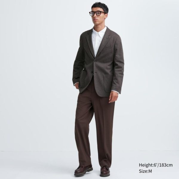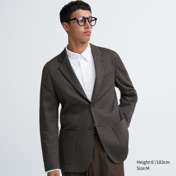 Men’s Comfort Patterned Blazer Jacket in Dark Brown | UNIQLO