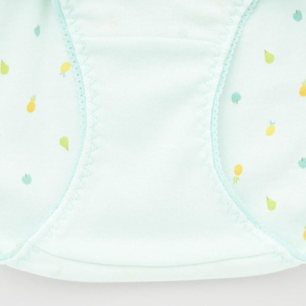 – Three-pack of fruit print, stripes, and solid color pointelle designs.