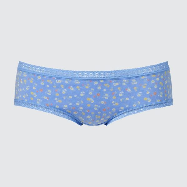 – Cotton briefs with lace detail at the leg openings and waist.