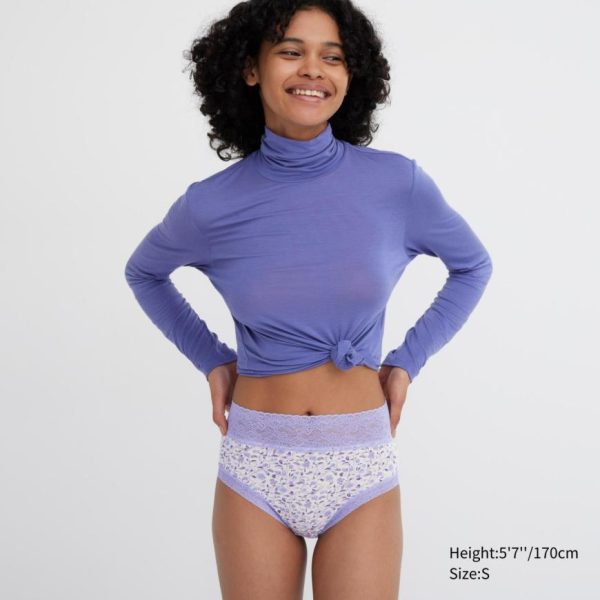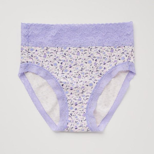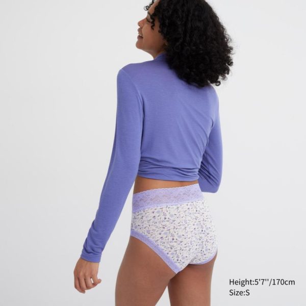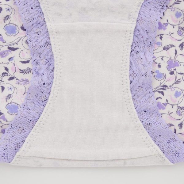 – Floral lace detail at the waist and leg openings.