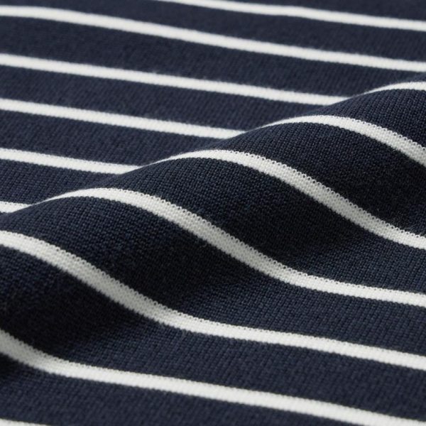 – Knit with alternating cotton-rayon and polyester threads for a crisp, stretchy fabric that retains its shape.