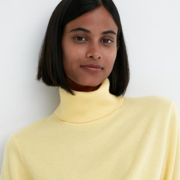 The unmistakable feel of 100% cashmere. Gently fitting turtleneck.