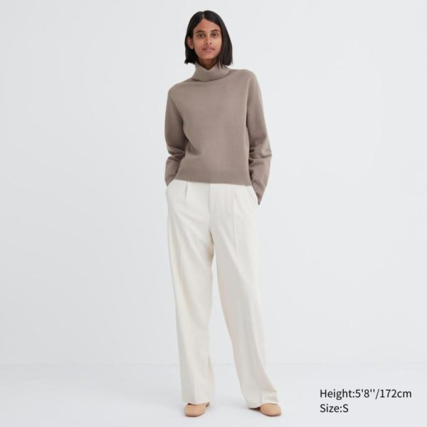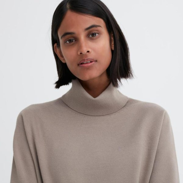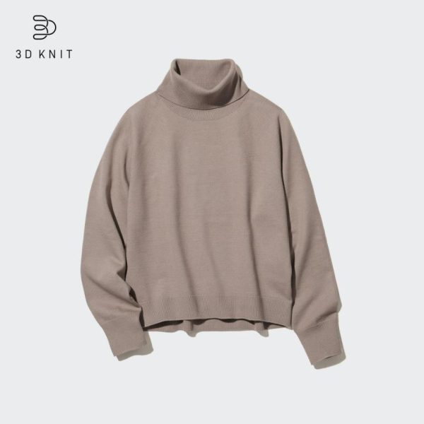 UNIQLO Knitted Jumpers & Cardigans | Women 3D Knit Seamless Soufflé Yarn Turtleneck Jumper Beige