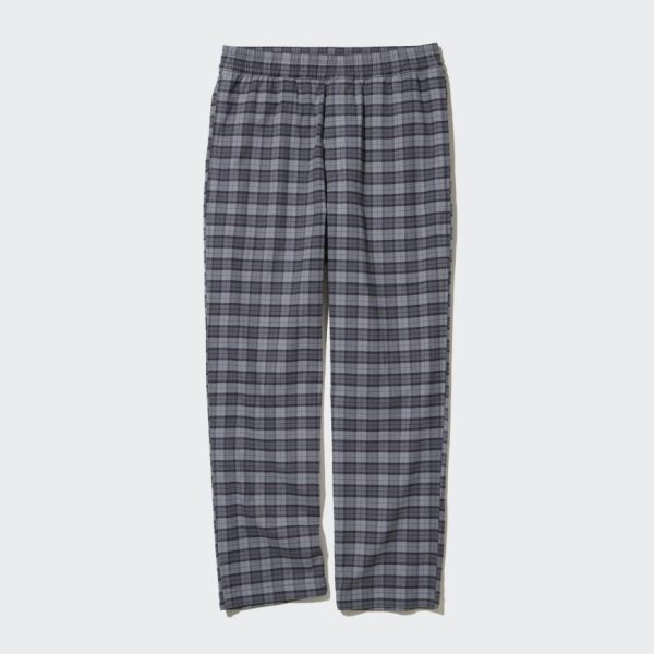 UNIQLO Loungewear & Pyjamas | Men Flannel Easy Patterned Ankle Length Trousers Gray