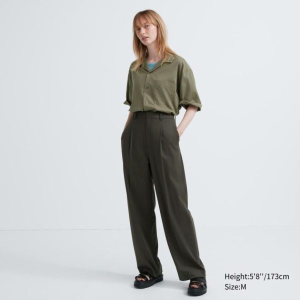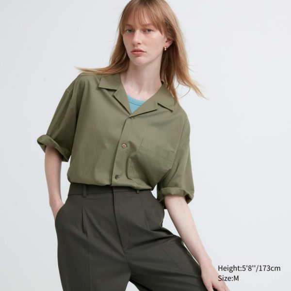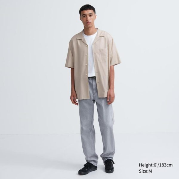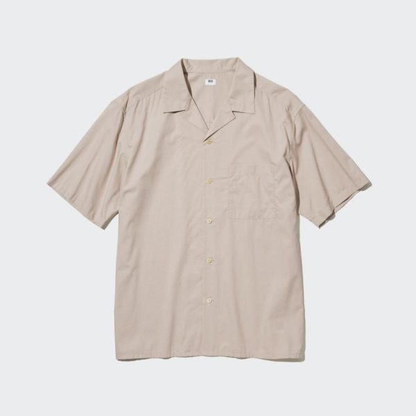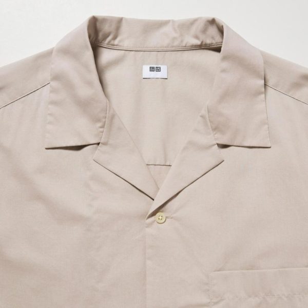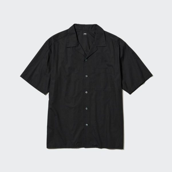 UNIQLO Men’s Cotton Blend Short Sleeve Shirt – Open Collar Black