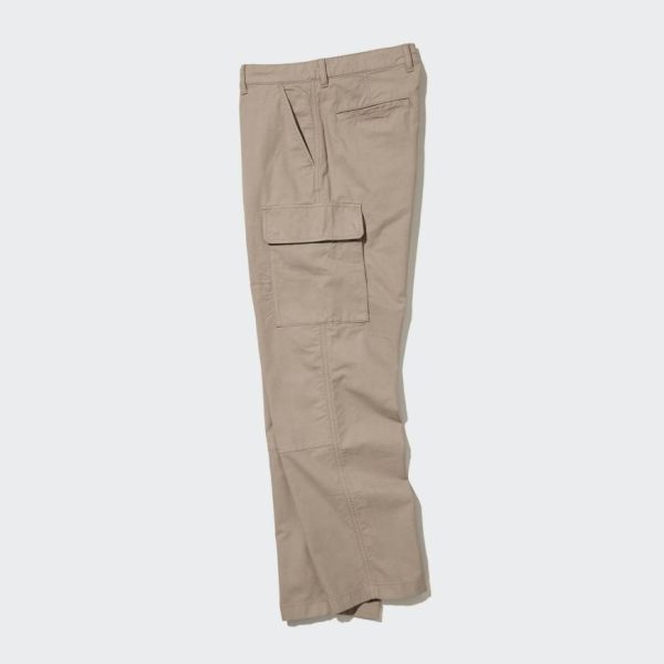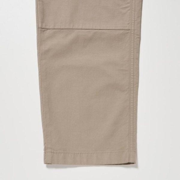 – Versatile wide-fit cargo pants crafted from stretchy cotton dobby fabric for superior mobility.
