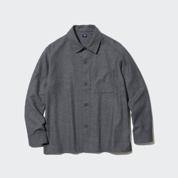 UNIQLO Overshirts | Men Brushed Twill Overshirt Gray