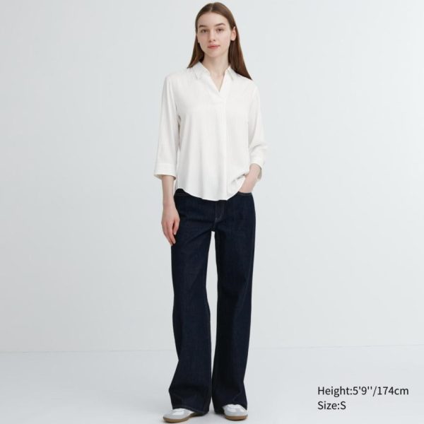 Smooth and wrinkle-resistant fabric. Flattering skipper neck design.