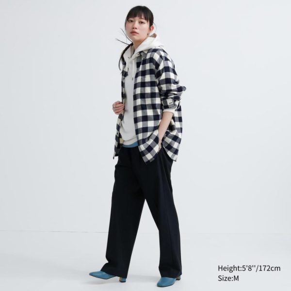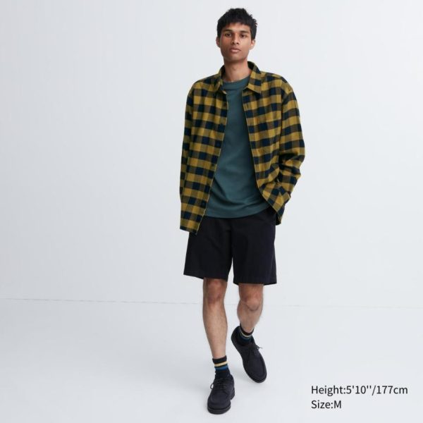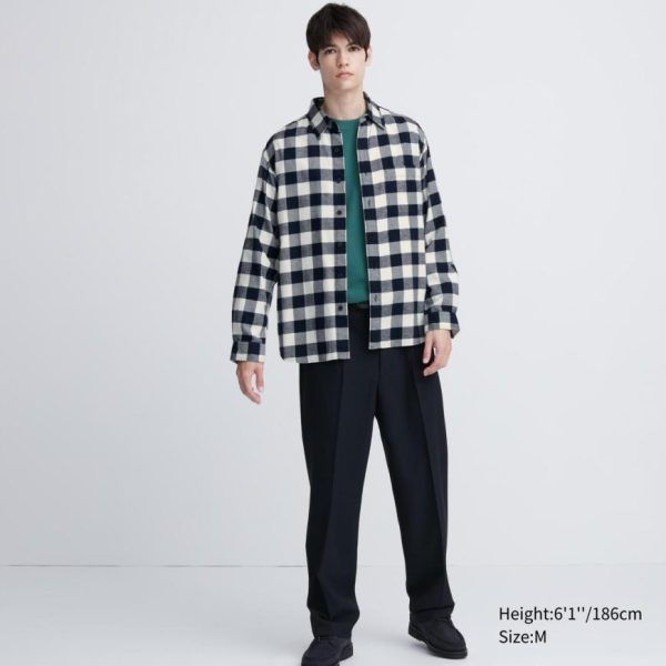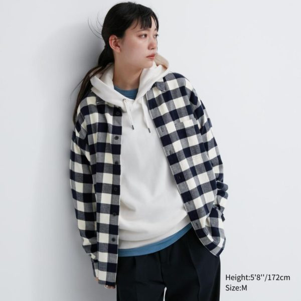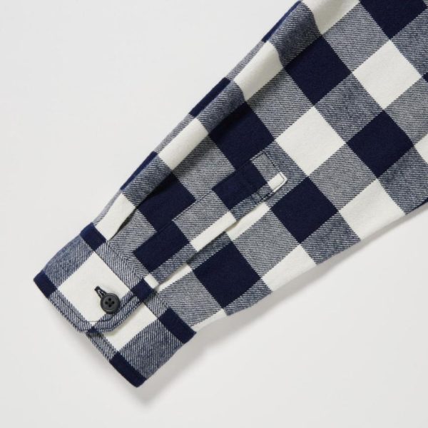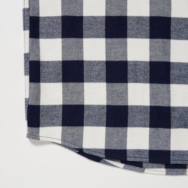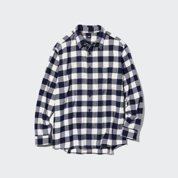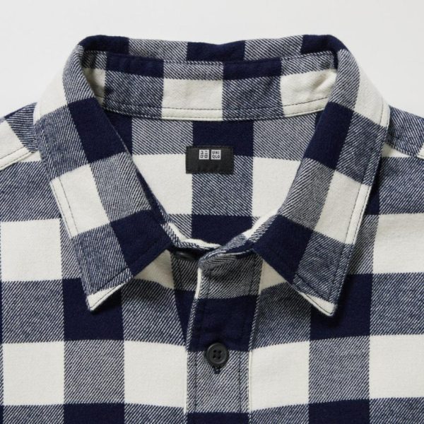 UNIQLO Shirts | Men Flannel Regular Fit Checked Shirt (Regular Collar) Off White