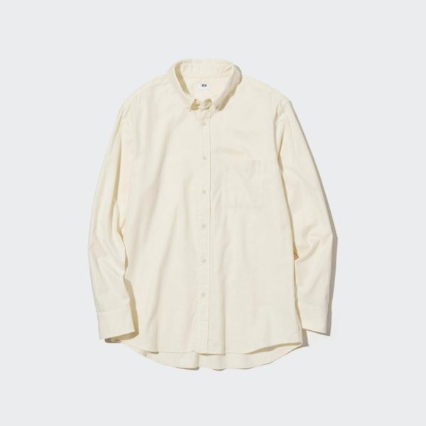 UNIQLO Shirts | Men Flannel Regular Fit Shirt (Button-Down Collar) Off White