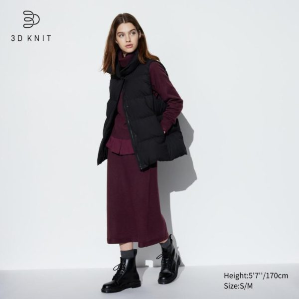 UNIQLO Skirts | Women 3D Knit Seamless Soufflé Yarn Skirt Wine