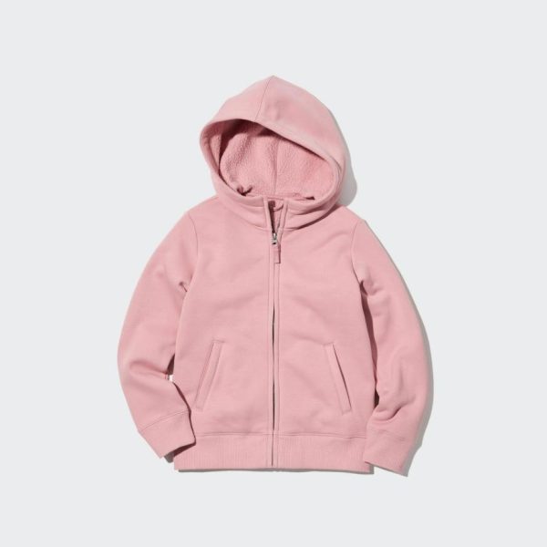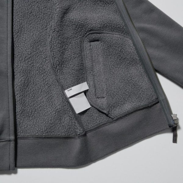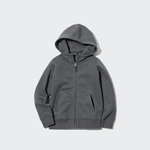 Sweatshirt fabric on the outside for versatile styling. With a warm and fluffy lining inside the sleeves.