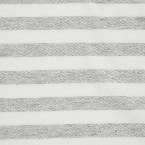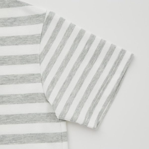 – Design features stripes of different widths on the body and sleeves.