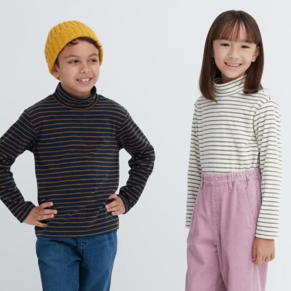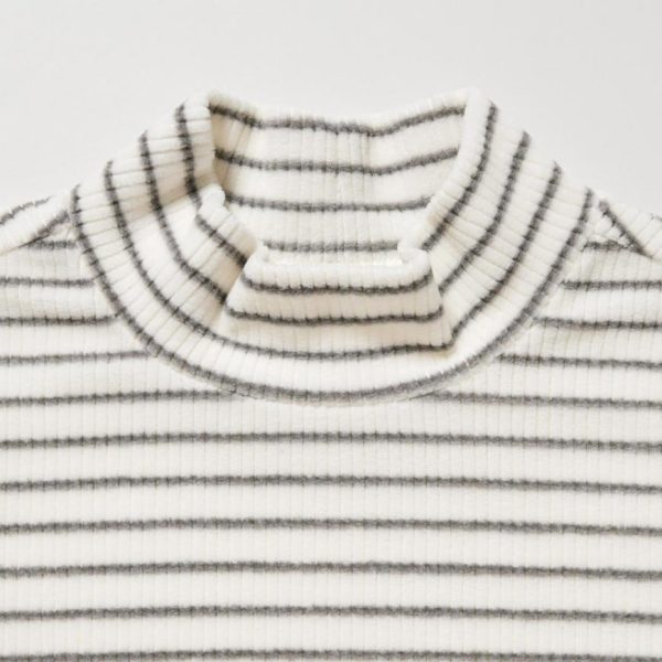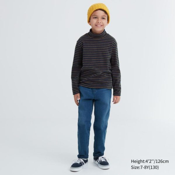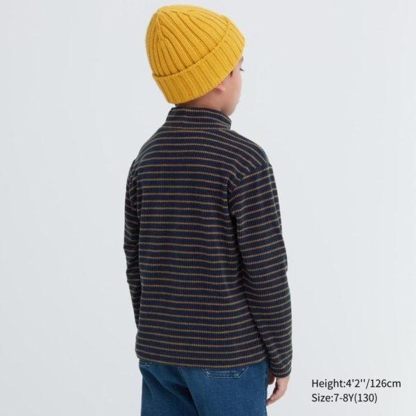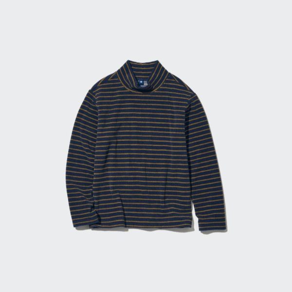 UNIQLO T-Shirts & Tops | Kids Kids Fleece Ribbed Striped High Neck Long Sleeved T-Shirt Navy