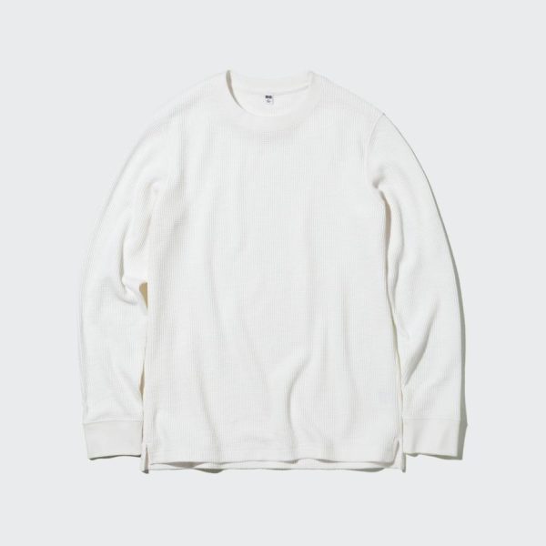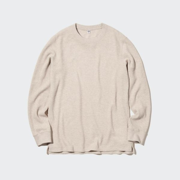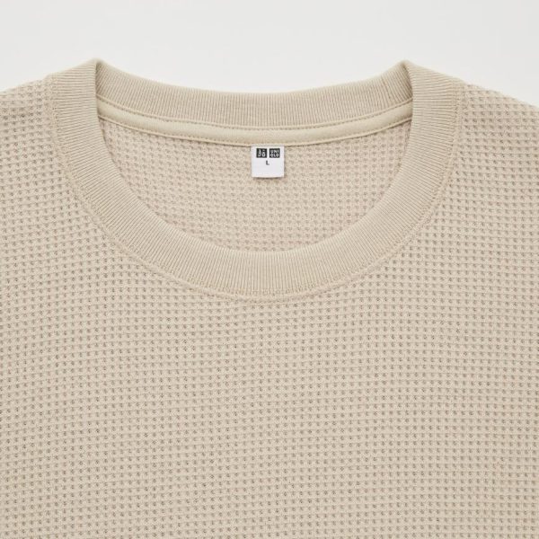 UNIQLO T-Shirts & Tops | Men Waffle Crew Neck Long Sleeved T-Shirt Beige