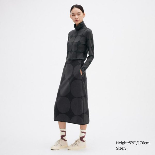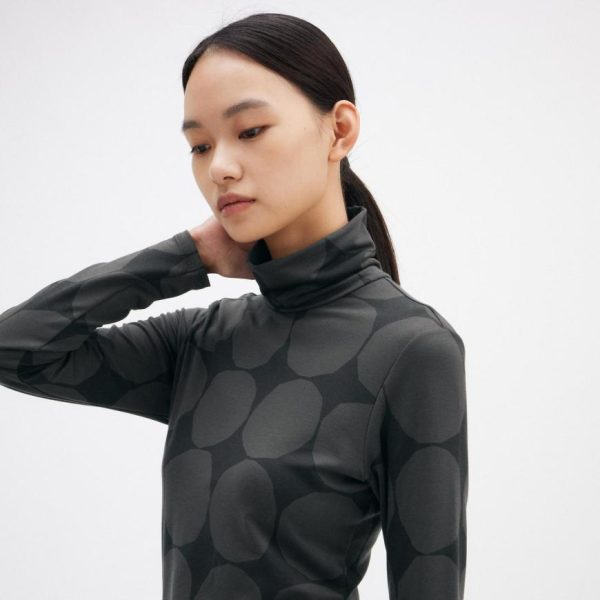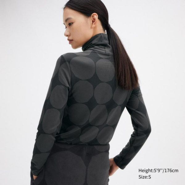 UNIQLO T-Shirts & Tops | Women HEATTECH Turtleneck Dot Print Turtleneck Long Sleeved Thermal Top Dark Gray
