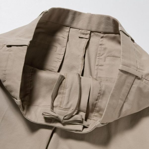 – The waistband uses the same fabric as the pants for a neat look with a shirt tucked in.