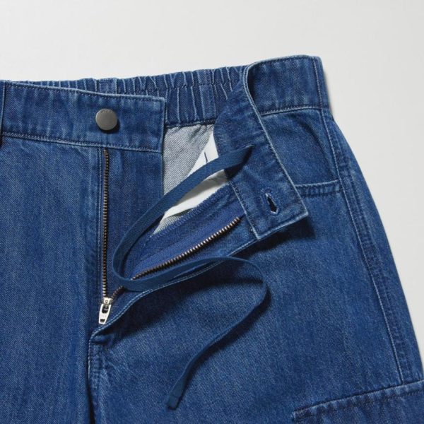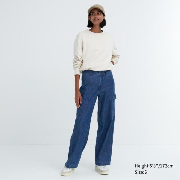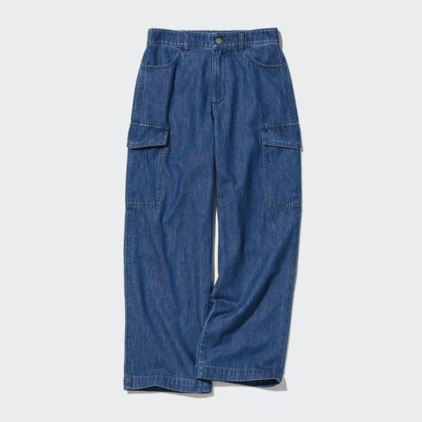 UNIQLO Trousers, Leggings & Joggers | Women Denim Wide Straight Leg Cargo Trousers (Long) Blue