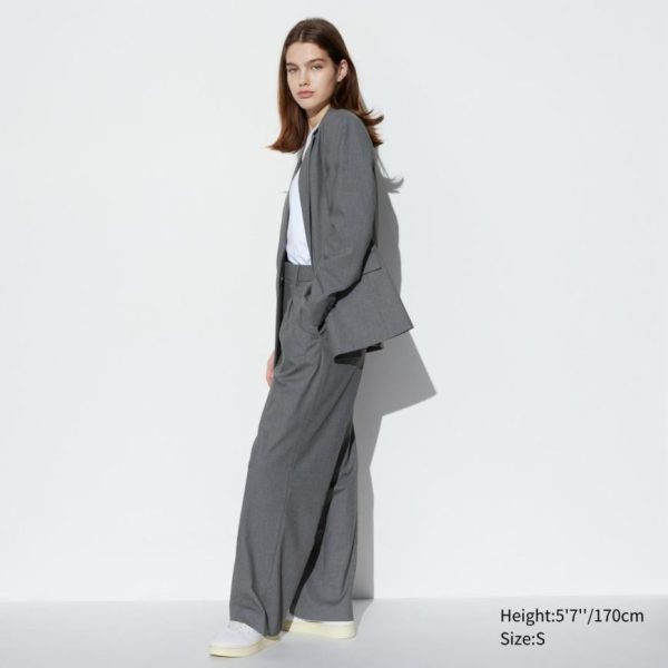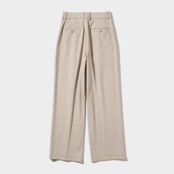 Wide cut with tucks for a flattering fit. All-direction stretch for comfort.