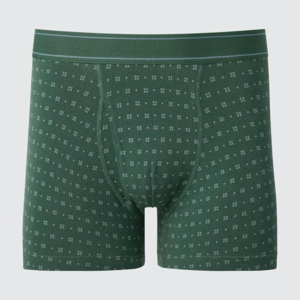 UNIQLO Underwear | Men Cotton Printed Boxer Briefs Olive