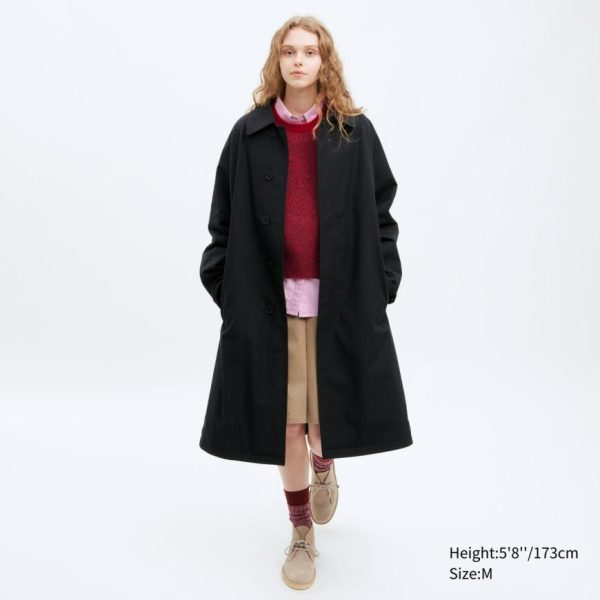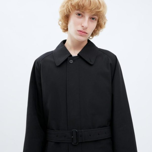 – A long, oversized silhouette with raglan sleeves, drawing inspiration from vintage trench coat designs.